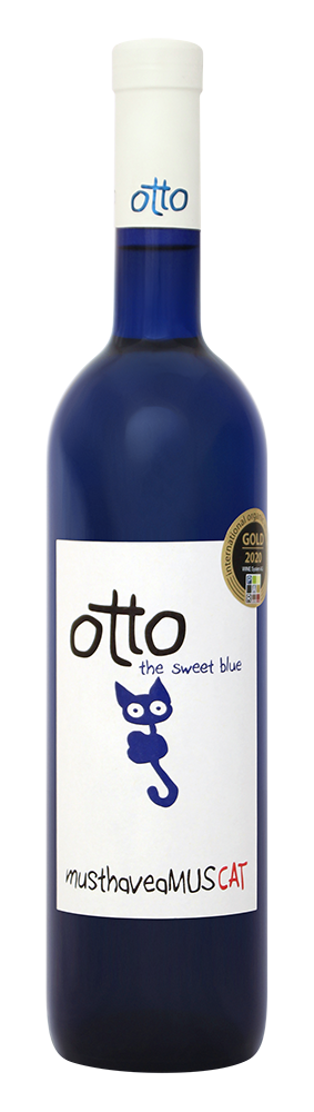 Das Wortspiel mit dem Namen der Traubensorte ergibt im englischen die "Katze Otto" - die suesse blaue Katze in der blauen Flasche - ein Wein und eine Katze die man haben muß (must have a musCAT).